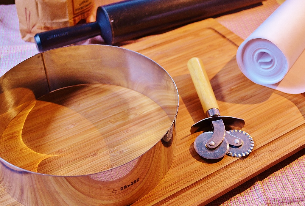Prepare the dough with a rolling pin . Place the pastry circle on a baking sheet, lined with parchment paper. Gently place the dough into the circle and press firmly across the circle to get a nice shape. Using your fingers, make a nice top border as show on the above pictures.