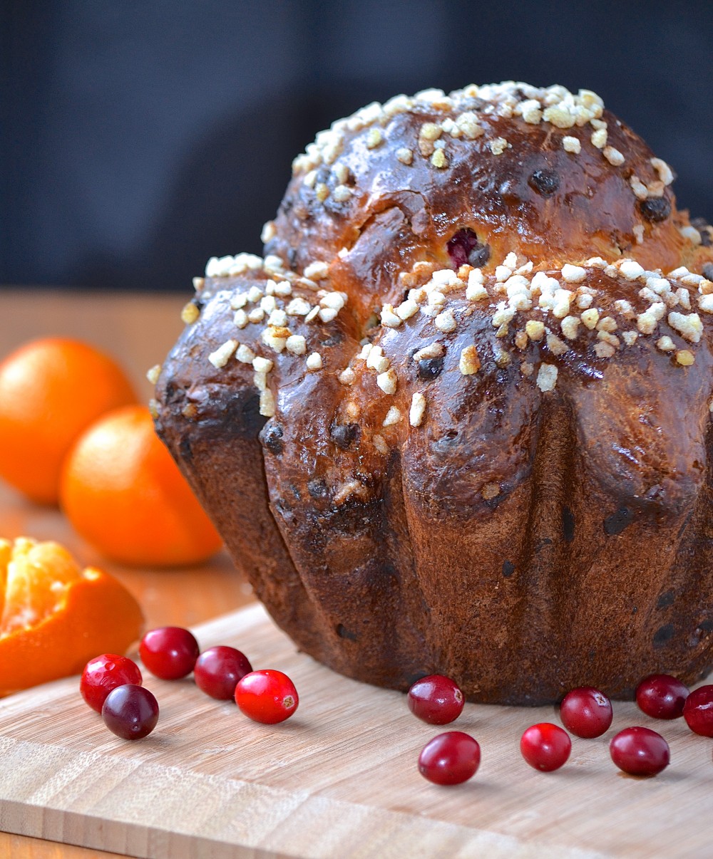J’avais en tête une brioche aux pépites de chocolat et zeste de clémentine, mais en allant chercher ma levure à la boulangerie, une brioche aux canneberges fraîches m’a fait de l’oeil…. J’ai donc ajouté des petites baies rouges à ma recette… Ces bijoux d’une couleur flamboyante éclatent à la cuisson et leur goût acidulé et pas du tout sucré se marie à merveille avec le chocolat et la clémentine. Quoi de plus Nowel que ces trois saveurs combinées! Vous n’obtiendrez pas le même résultat avec des canneberges séchées, mais vous pourriez à la limite utiliser des surgelées, ou encore faire gonfler les séchées pendant toute une nuit dans un alcool ou du jus d’orange…