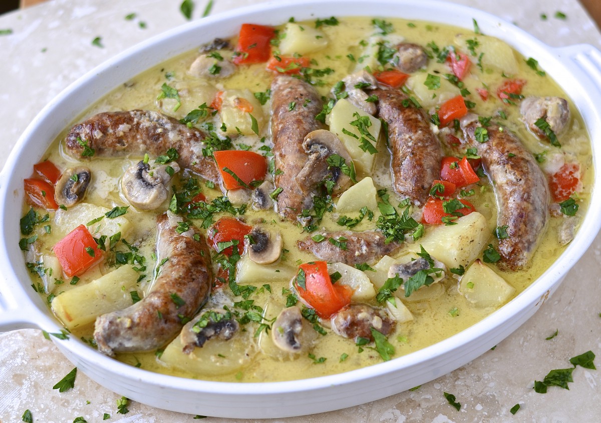 Cream and mustard sausage casserole