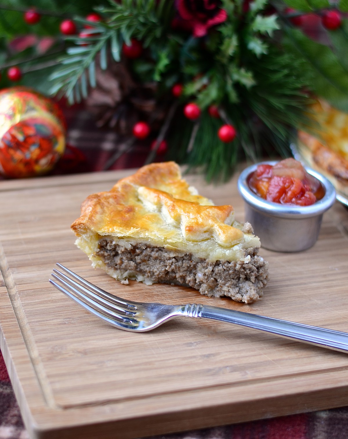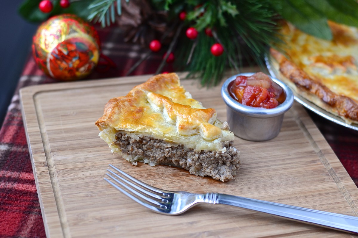 In my family, we enjoy onion, garlic, savory, clove and celery seeds in our tourtière. Most Quebeckers eat the pie with some homemade tomato or fruit ketchup. It would also be delicious with any kind of chutney.